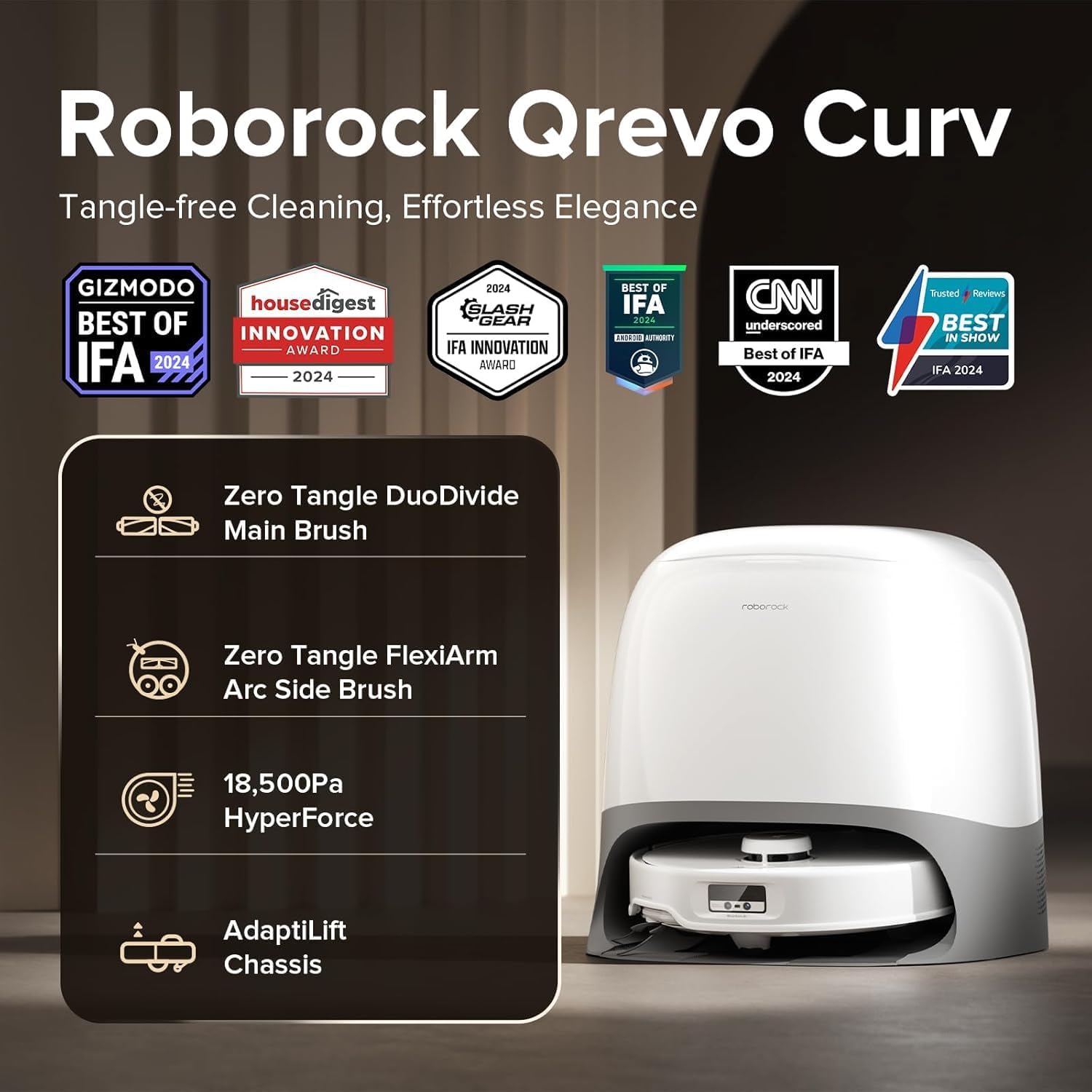 Zero Tangling Main & Side Brushes: Say goodbye to tangled hair! The DuoDivide Main Brush and FlexiArm Arc Side Brush make cleaning hassle-free, even in homes with long hair or pets. Roborock Qrevo Curv’s zero tangling system ensures you won’t need constant brush maintenance, letting you focus on enjoying a clean home without interruptions.